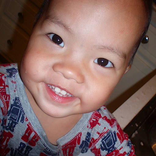 It is official. I am the mother of a toddler. A "terrible two". Yipes. Check out that smile. This little turkey is gonna be trouble. You can just see it in his eyes.